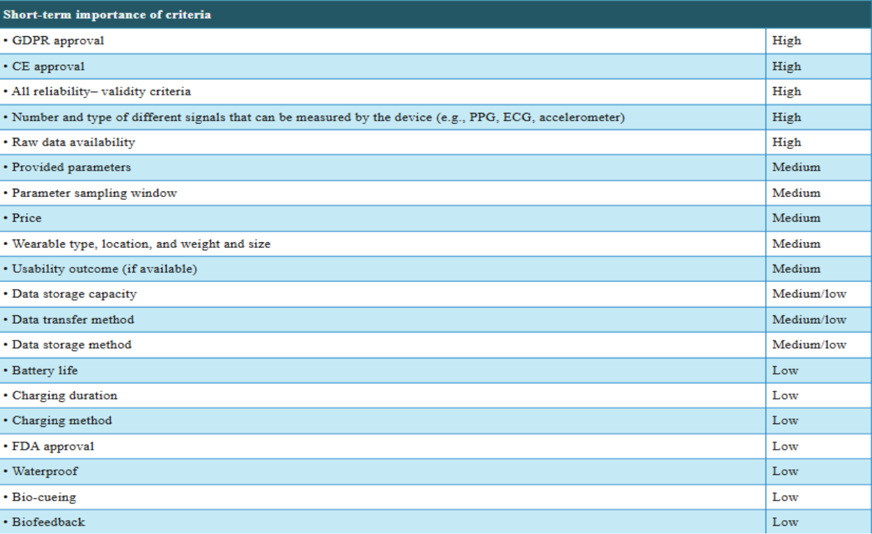 • To systematically choose a wearable among the multitude of available devices, one should perform: