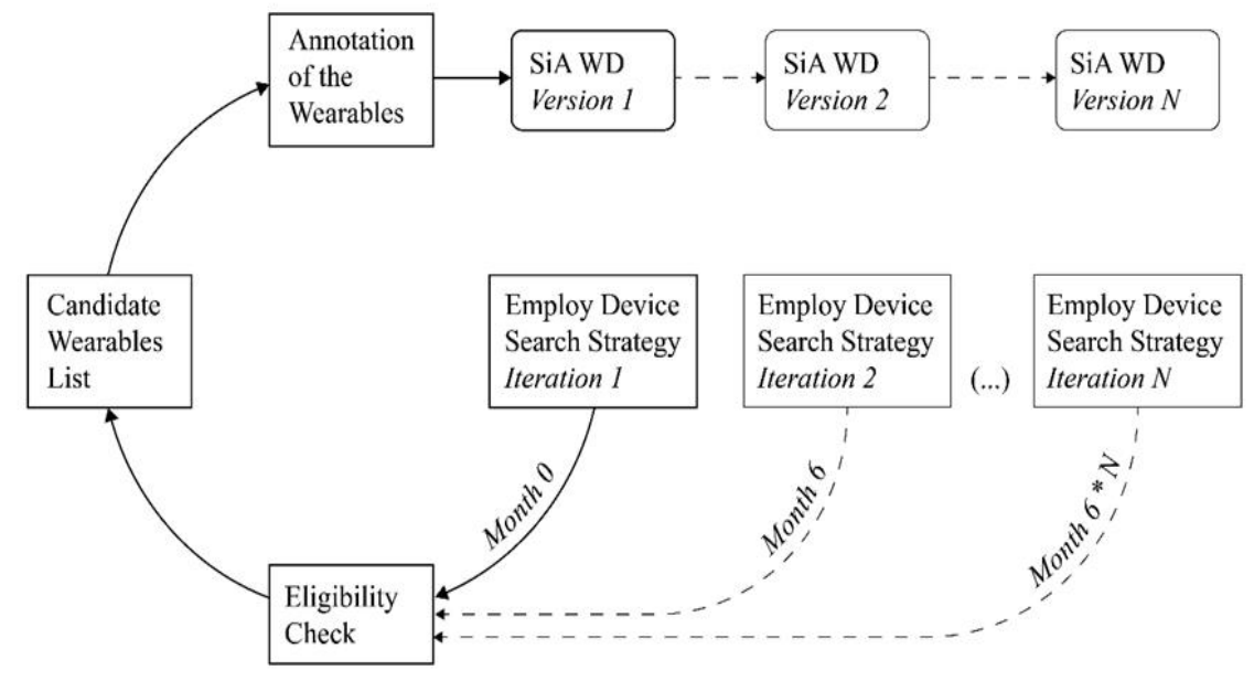 In contrast to the wearable inventories or review studies with a static document, the SiA wearables database will be continuously updated every 6 months. This enables the entry of newly released wearables and updating of the validity, reliability, and usability information on existing wearables.